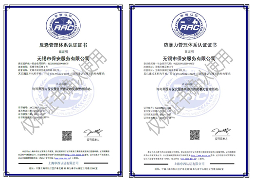 日前,公司獲得國內知名管理體系認證機構頒發的“反恐管理體系認證證書”和“防暴力管理體系認證證書”。認證中心審核專家組通過查閱文件、詢問、訪談、觀察、記錄抽樣、項目現場檢查等方法,對公司反恐管理和防暴力管理體系的建立、實施與運行進行了嚴格審核和充分驗證。反恐管理體系認證證書和防暴力管理體系認證證書的頒發標志著公司在反恐和防暴力方面邁向更高水平的規范化和標準化。
