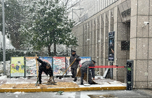 12月18日,無錫迎來了全市強(qiáng)降雪天氣,為錫城換上潔白盛裝,美麗的雪景背后是可能出現(xiàn)的道路結(jié)冰與積雪。為了保證警務(wù)中心大院的通行安全和正常秩序,防止因路面結(jié)冰對車輛通行造成影響,公司領(lǐng)導(dǎo)靠前指揮,迅速部署,全力組織駐警務(wù)中心保安中隊實施清雪除冰作業(yè)。隊員們在大院主干道及各進(jìn)出口拋灑工業(yè)鹽,鋪上草墊,每小時進(jìn)行一次破冰除雪,確保車輛、行人安全通行。