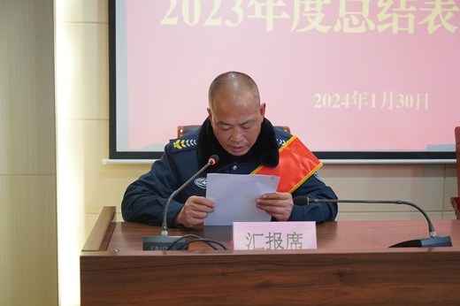 會上,宣讀了《關于表彰2023年度先進集體先進個人的決定》,對2023年表現突出的先進集體和先進個人進行了表彰。優秀保安員代表明月春同志作匯報發言,公司領導作2023年工作總結與2024年工作謀劃。
