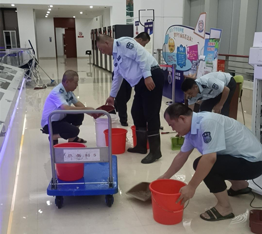 今年第13號臺風“貝碧嘉”于9月16日強勢登陸無錫。早在臺風預警發布之初,公司派駐警務中心保安中隊啟動了極端天氣應急處置預案,組織隊員開展防汛前期檢查準備工作。中隊以高度的責任感和使命感,強化任務落實、監測預警、應急處置、值班值守,確保防臺防汛工作落到實處。隊員們堅守在一線,開展室內外巡邏,確認室外各類撐牌、錐形筒、遮陽傘等物件是否安放妥當;檢查雨水井、污水井、排水口是否有堆積物;巡查各樓層及地下車庫有無滲水情況;提前整理準備沙袋、草墊、應急燈、鐵鍬、掃帚等相應物資;監控室密切關注院內各監控點位安全情況,隨時與其他崗位做好聯動工作。