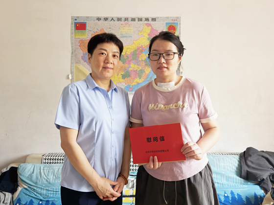 5月15日上午,公司財務管理部和綜合辦公室相關人員前往患病職工姬某家中進行走訪慰問,為她送去慰問金、慰問品和公司的誠摯祝福。