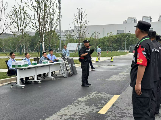 5月15日下午,公司邀請專業教官到國家半導體重點項目之一的華虹半導體(無錫)有限公司開展反恐應急演練與培訓的現場教學。教官介紹了突發事件類型以及應對措施,采用實操演練、模擬對抗等訓練方式,詳細講解了盾牌、鋼叉、警棍等裝備的正確使用方法,并針對持盾、持盾防護和撞擊、不同類型鋼叉使用、特定部位的鎖控、鋼叉擊打、持棍劈擊、戳擊等進行示范指導。在實戰對抗演練中,參訓隊員熟練掌握并靈活運用所學技能,配合默契、反應迅速,展現出良好的精神風貌和訓練成效。